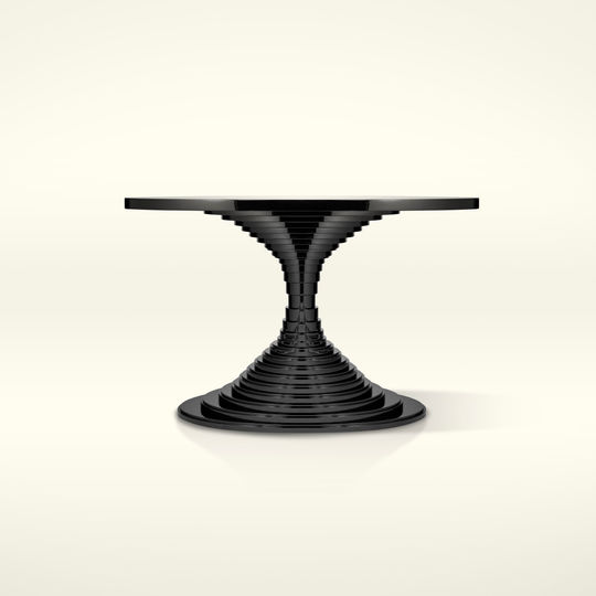 The Disk console table is comprised of volumetric, disk-shaped forms in various scales. Its form is enhanced by a glossy lacquer material, adding to its elevated aesthetic.